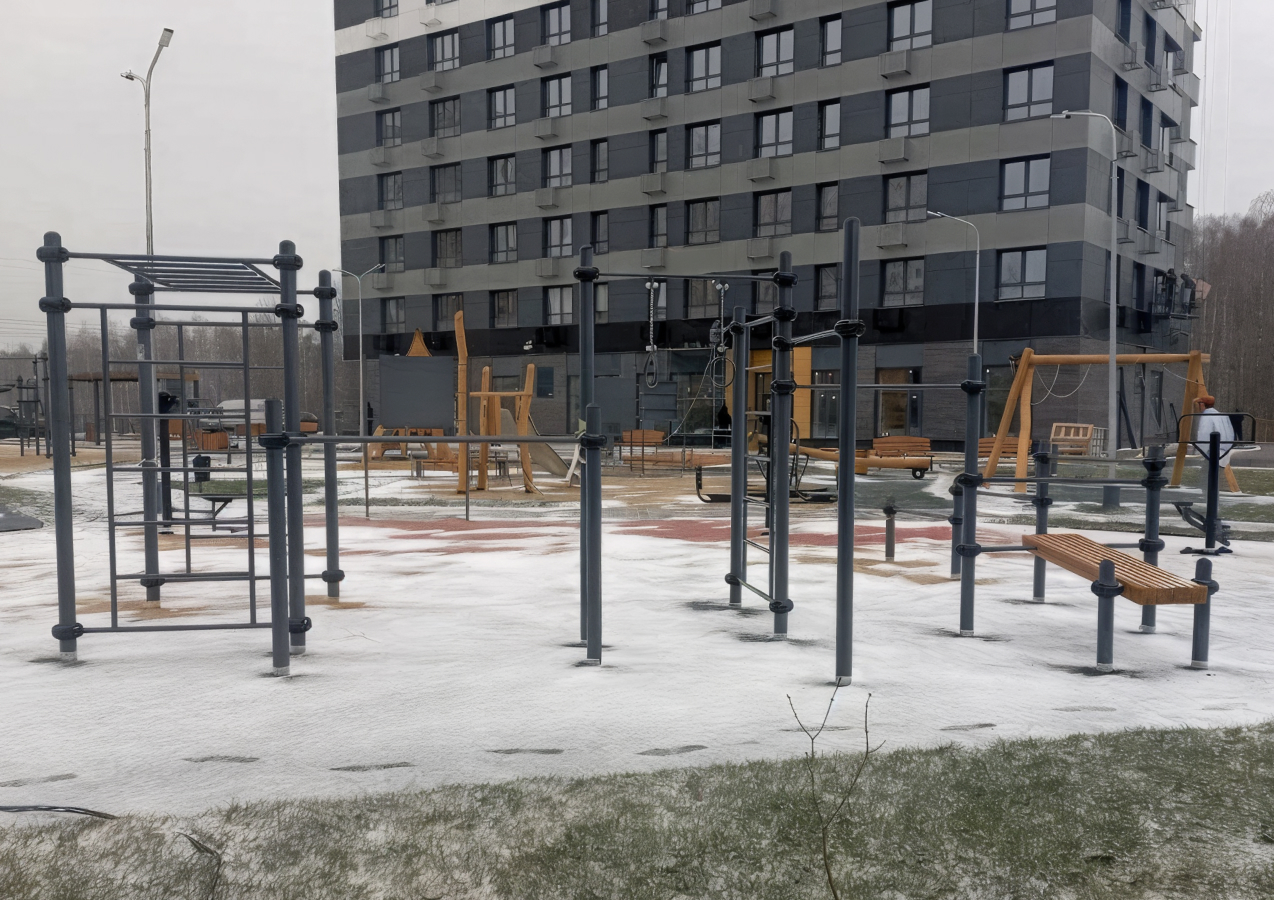Проект в Ивантеевке был реализован в условиях, которые требуют от подрядчика не стандартных решений, а инженерной ответственности. Размещение детской и спортивной площадки на кровле паркинга исключало применение типовых схем монтажа и требовало точных расчётов по нагрузкам, креплениям и распределению веса оборудования.