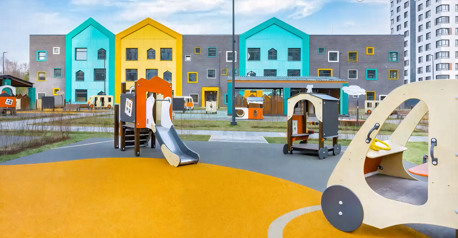- Дети получили площадку, где можно переключаться между видами активности, не покидая двора: от командных игр и лазания — к «облачным» качелям или тихим ролевым сюжетам.